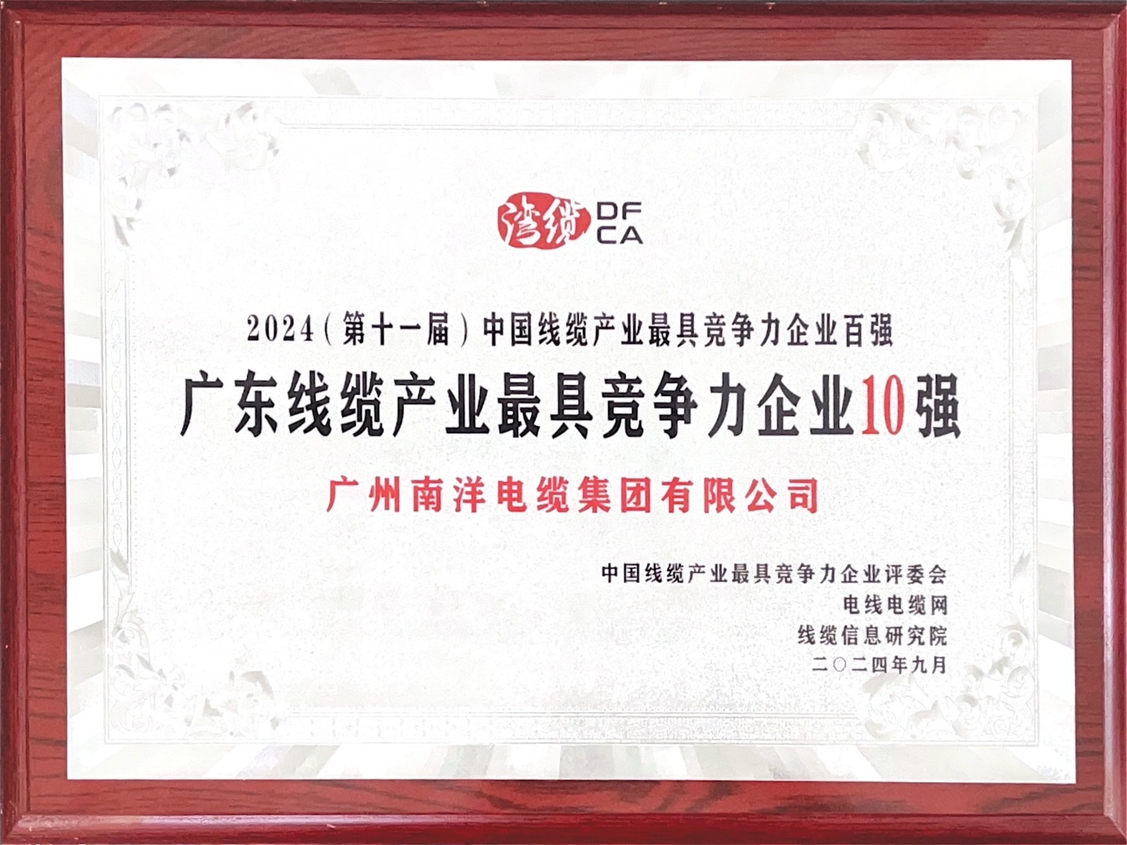 廣東線纜行業(yè)最具競(jìng)爭(zhēng)力企業(yè)第一名、中國(guó)線纜行業(yè)最具競(jìng)爭(zhēng)力企業(yè)20強(qiáng)、華南地區(qū)電線電纜研發(fā)制造龍頭企業(yè)